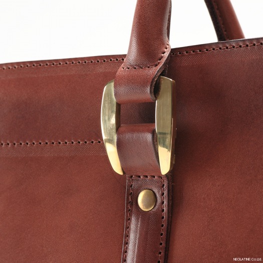 レザーの色味の中にゴールドのブラス製バックルは一際輝きを放ち<