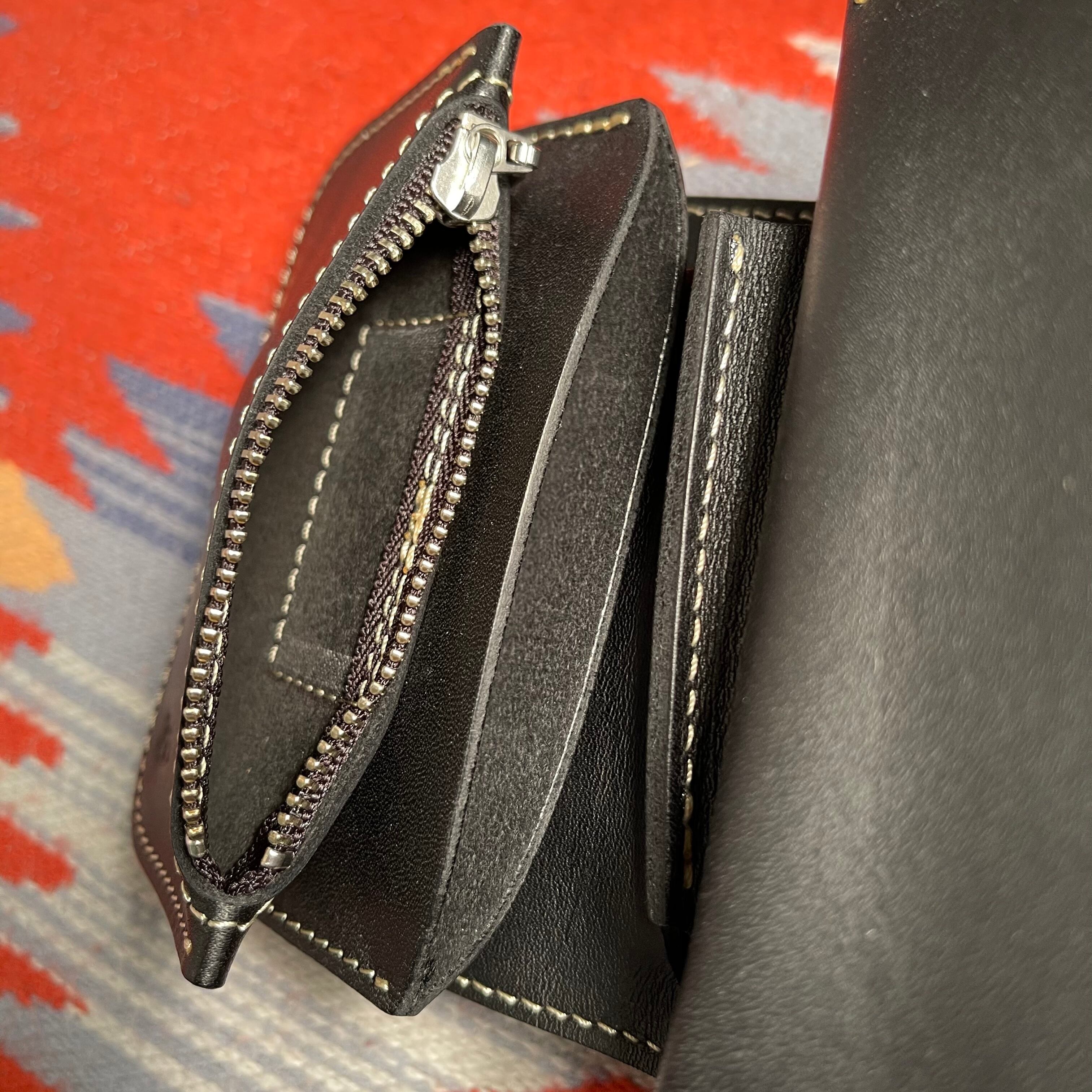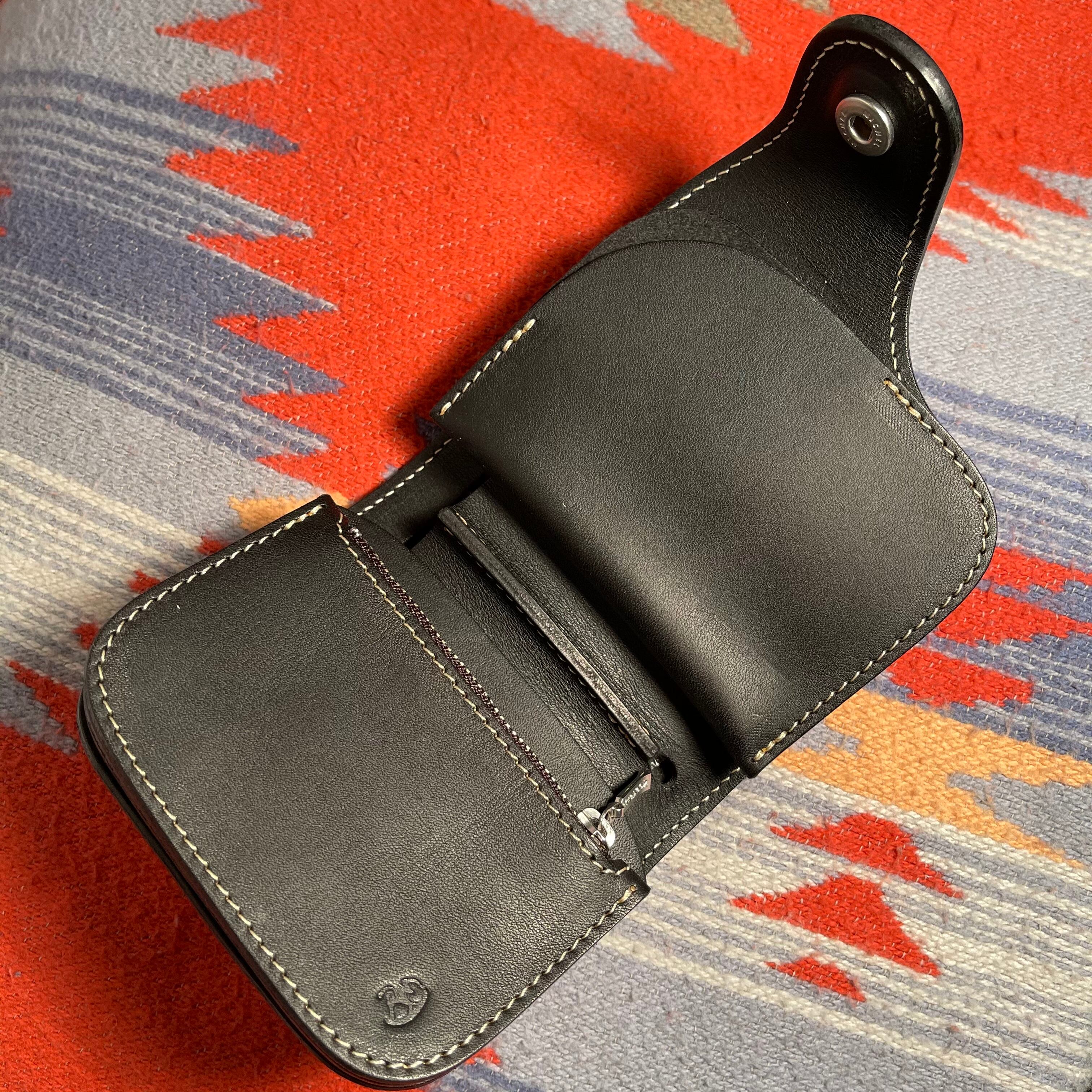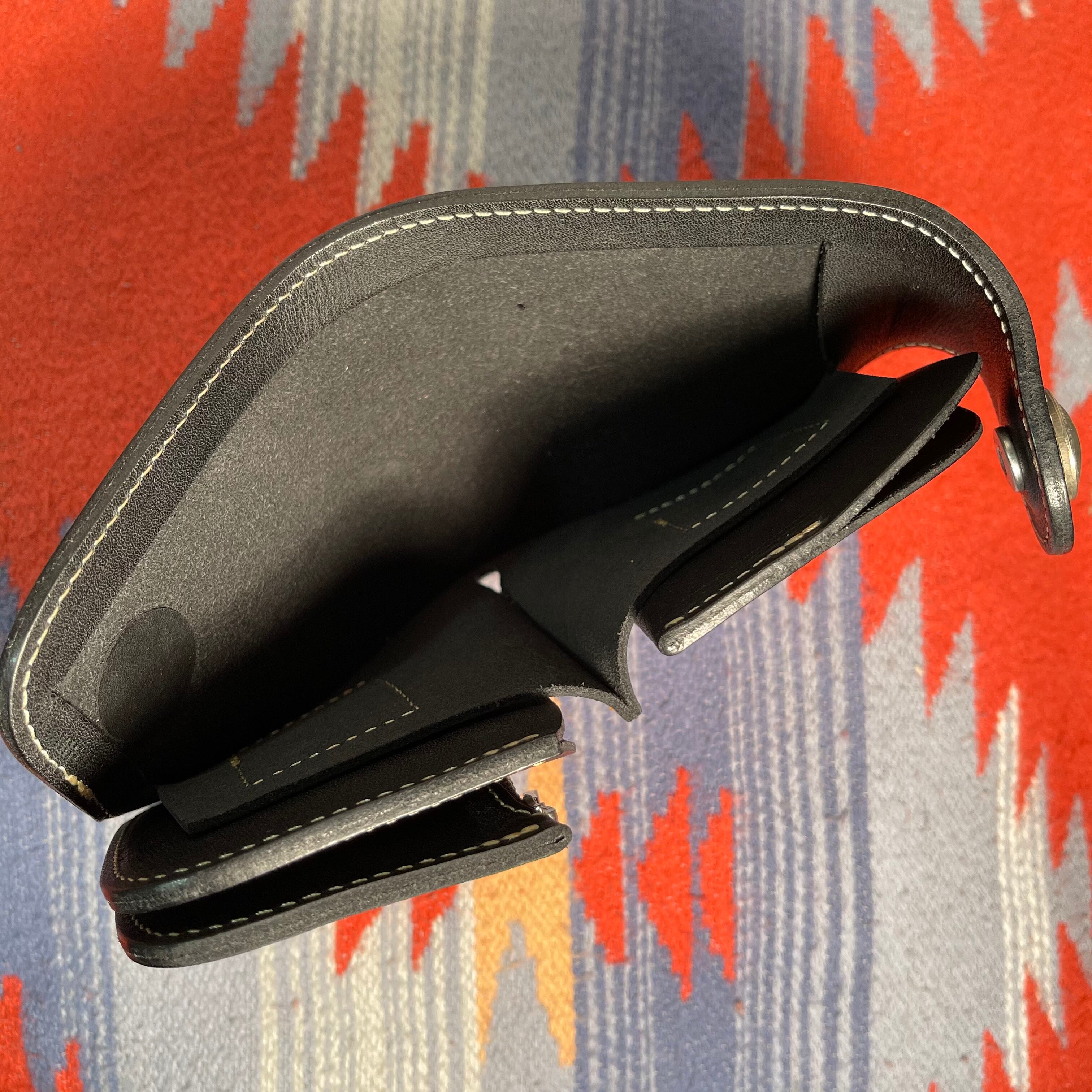 正式名称は“ホースライディングウォレット”ジーンズのバックポケットにカッコ良く収まる財布として、馬の鞍とガンホルスターをモチーフとして3次元的にデザインされています。